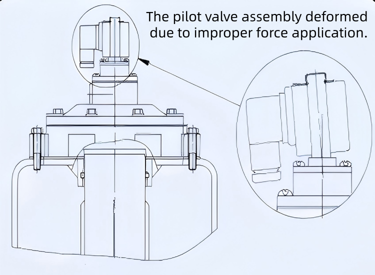 स्थापना के बाद, वेल्ड स्पैटर या डायाफ्राम को उच्च तापमान क्षति को रोकने के लिए एयर टैंक, कनेक्टेड फ्लैंज, या ब्लो पाइप पर वेल्डिंग संचालन निषिद्ध है। सोलनॉइड वाल्व पायलट असेंबली को प्रभाव क्षति से बचाने के लिए परिवहन या स्थापना के दौरान सावधानी से संभालें, जो स्पूल स्लीव को विकृत कर सकता है, जिससे चलती स्टेम जाम हो सकती है और वाल्व संचालन को रोका जा सकता है।